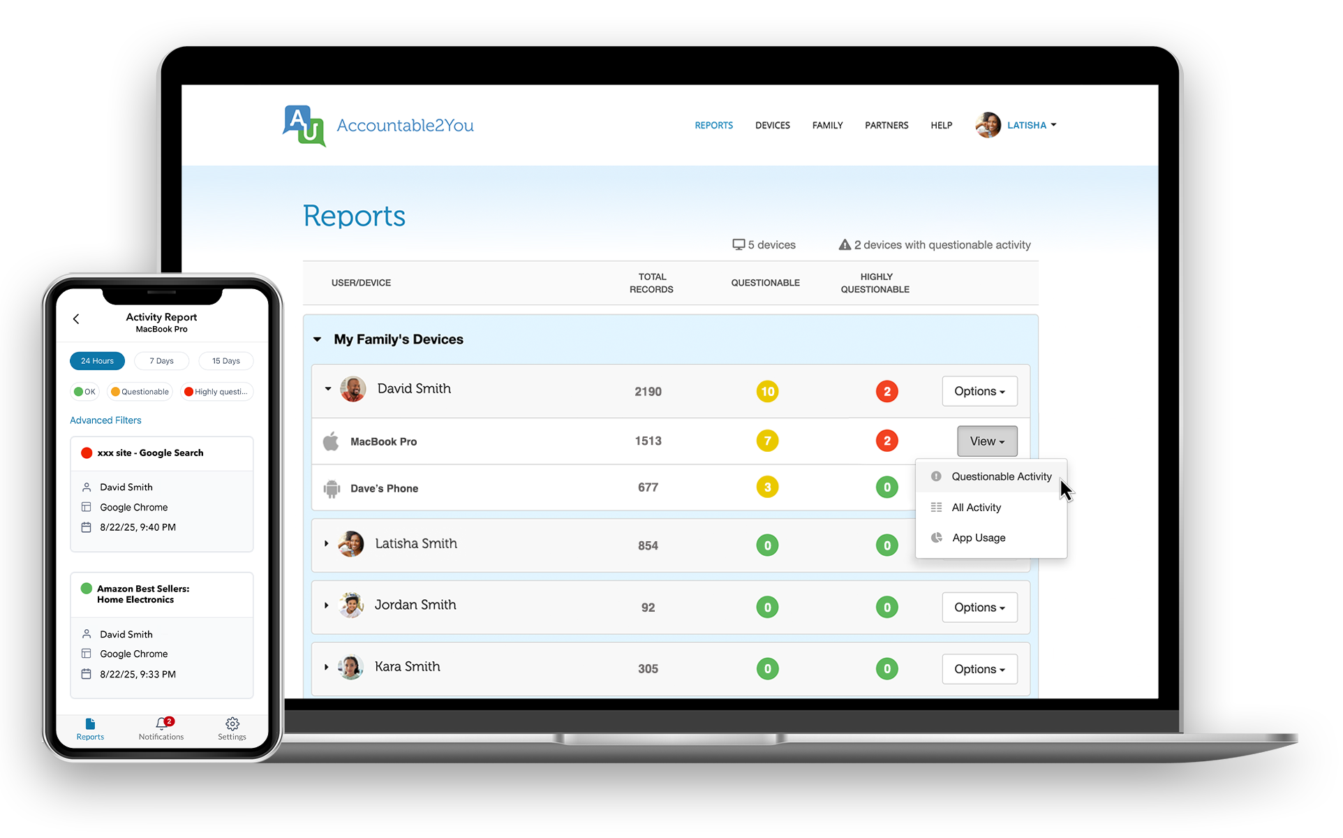Use your devices freely, knowing you're not alone online. Your accountability partners are there to help you live intentionally.
